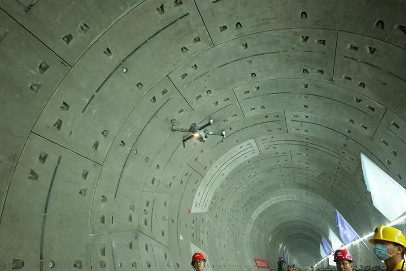 無人機在盾構隧道內最大測試飛行和通訊傳輸距離為300米,可以多角度全方位避障,定制化的探照燈、喊話器及夜航燈,擴展作業功能,讓應急搶險任務更高效。