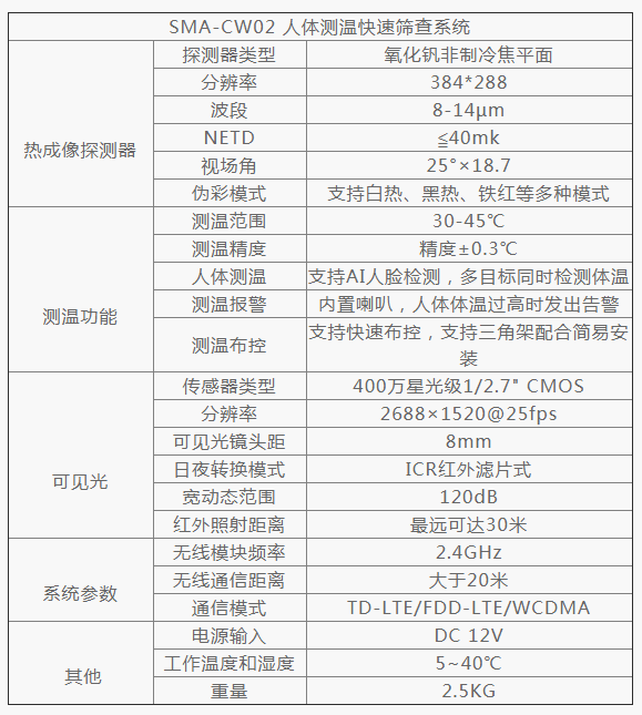 思邁奧 SMA-CW02 人體測(cè)溫快速篩查系統(tǒng)