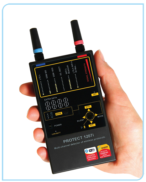 Protect 1207i防偷拍設備是烏克蘭DigiScan Labs公司研制的一款非常可靠的反竊聽反偷拍檢測設備,它同時也是多通道無線數據傳輸協議檢測器。它是工程師或反監測專家用來跟蹤各種無線電數字傳輸設備的可靠工具,例如:GSM、藍牙等新型視聽設備等。